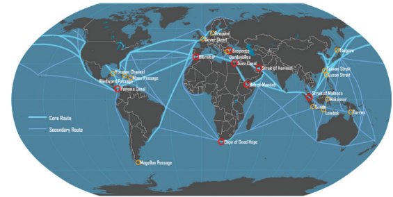 Rute pelayaran utama dunia relatif sederhana, yaitu menghubungkan Amerika Utara, Erop dan Asia Pasifik melalui Terusan Suez, Selat malaka, dan Terusan Panama. Keuntungan posisi Indonesia juga dapat dilihat dari geologis. Indonesia berada pada jalur pertemuan tiga lempeng, yaitu Lempeng Eurasia,Pasifik, Hindia. Keuntungan dari letak geologi seperti ini adalah beragamnya potensi sumber energi dan mineral. Sebagai contoh, energi panas bumi banyak ditemukan di Indonesia karena adanya aktivitas kegunungapian.