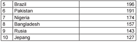 - China (197 juta hektar persentase total wilayah 21,40%)
